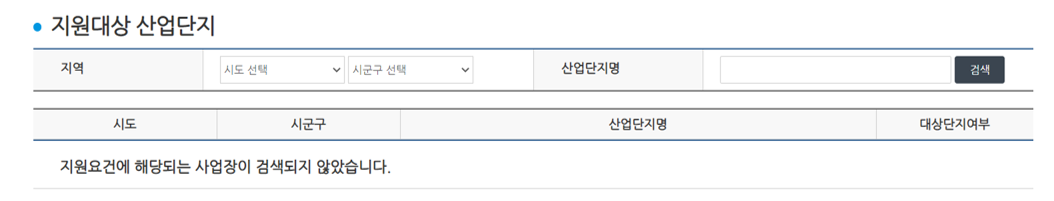 자신이 지원대상 산업단지에서 일하고 있어야 신청이 가능한데요. 자신이 지원대상 산업단지에서 일하고 있는지 역시 사이트의 '산업단지 찾기'에서 가능합니다.
