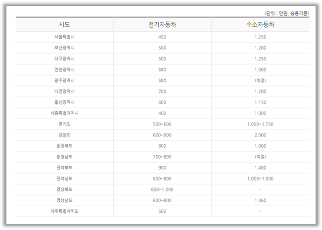 ② 전기차 지자체별 보조금